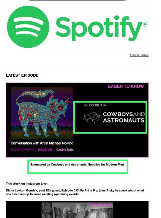 Company logo, link, and/or text on five (5) episode-specific Eager To Know communications for one month as specified below.